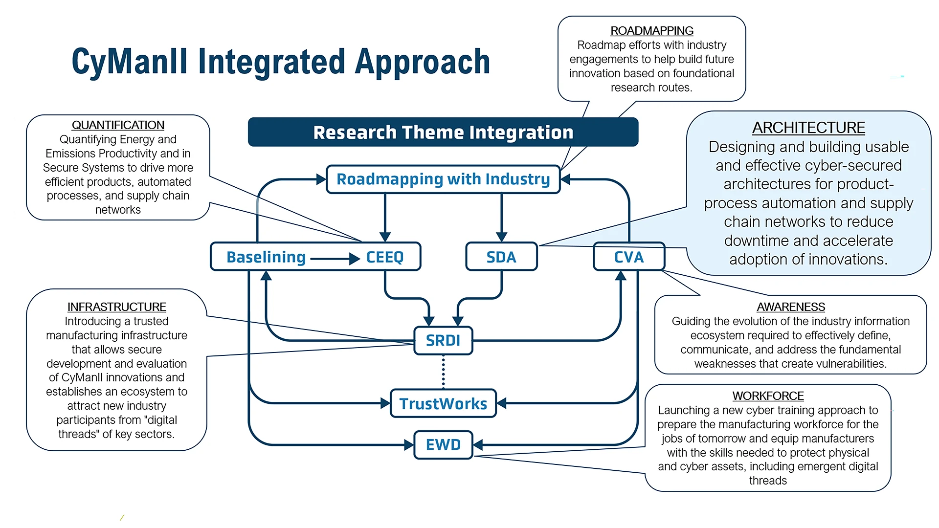 As a Technology Readiness Levels (TRL) 2-6 institute focused on driving a whole-of-nation transformation towards secure U.S. manufacturing, CyManII plays a critical role as a bridge for transitioning best-in-class innovations onto the manufacturing floors of our partners and into critical domestic supply chains.